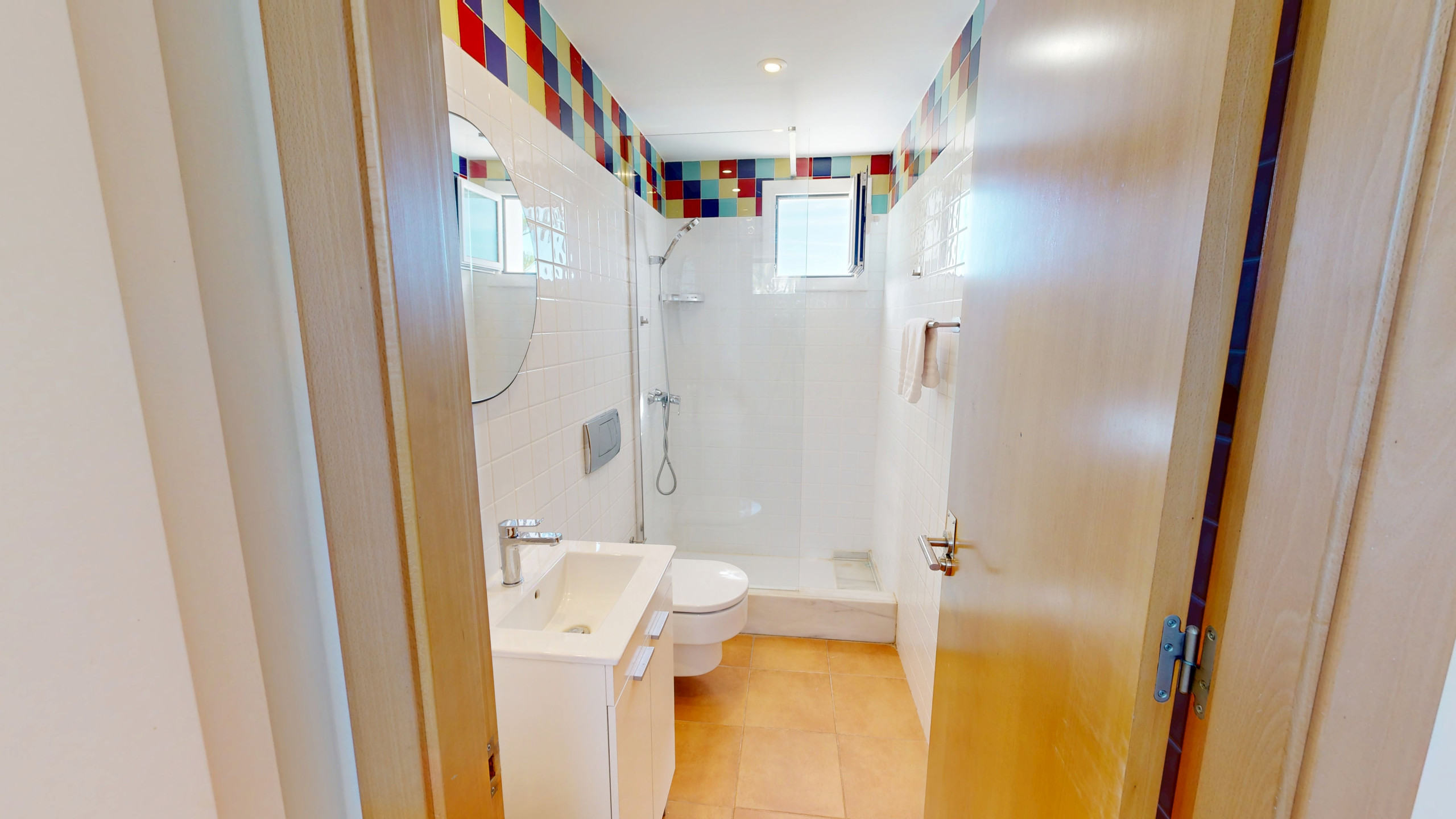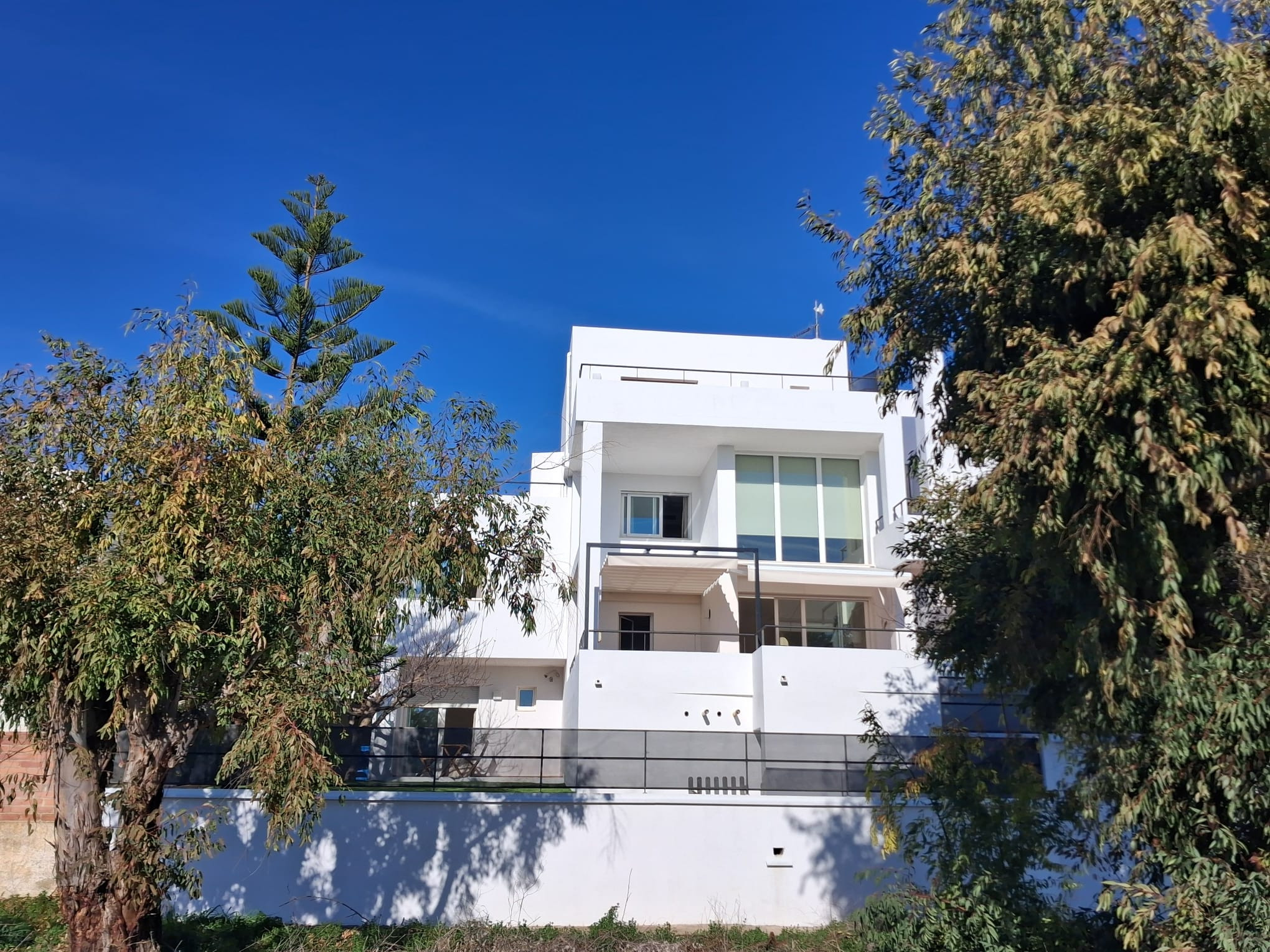 On the lower floor, there is a double bedroom with direct access to the garden, as well as a guest toilet. The first floor features one bedroom with a private bathroom. On the second floor, there are two additional bedrooms that share a bathroom. Crowning the villa, the top floor hosts the spectacular master suite, complete with a full bathroom, dressing room, and a private terrace with truly breathtaking sea views — the perfect spot to enjoy unforgettable sunrises and sunsets.