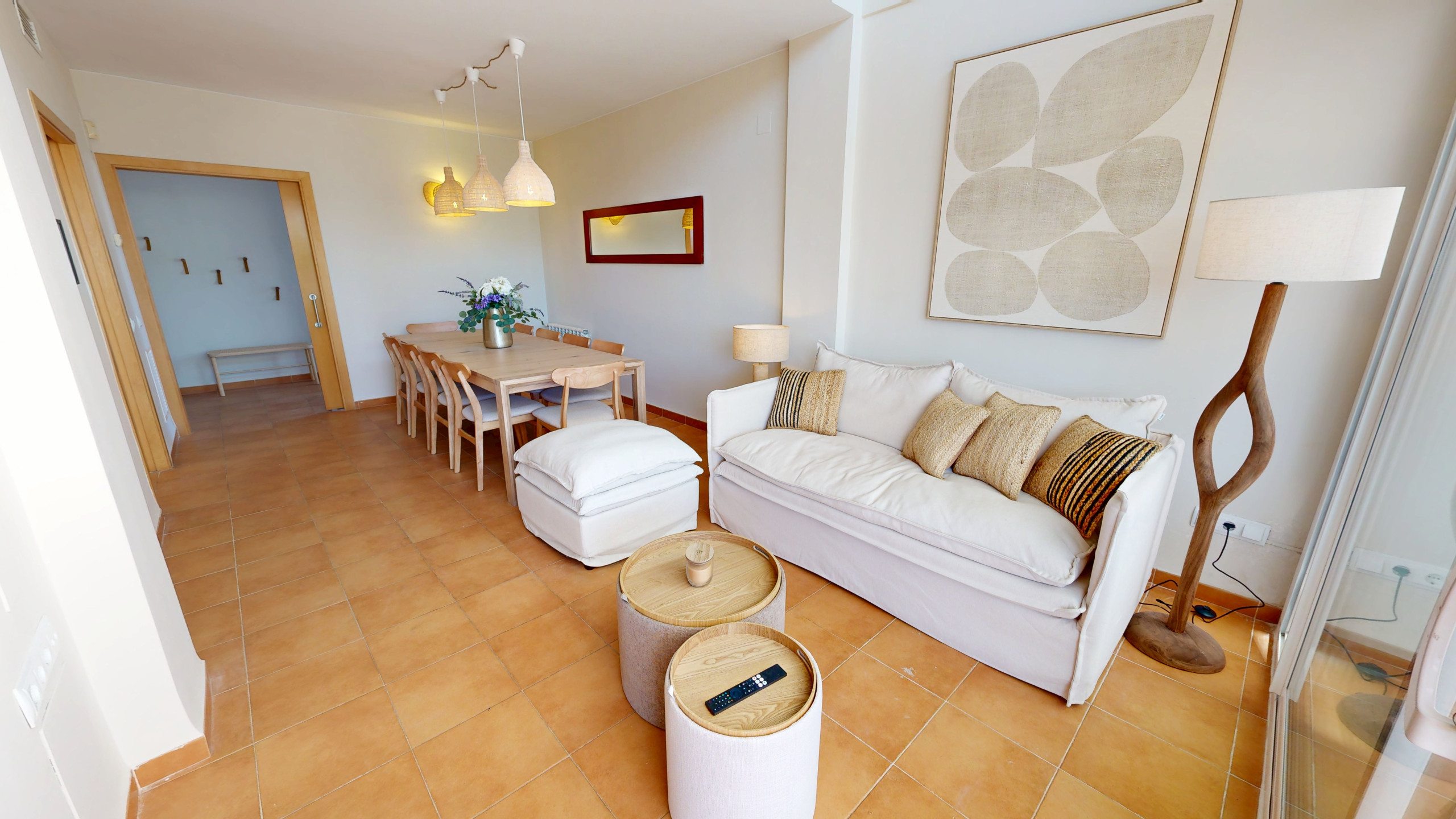 The property stands out for its modern, elegant, and bright décor, thoughtfully designed and fully equipped with all the amenities needed for a comfortable and worry-free stay. On the ground floor, you will find a welcoming living-dining area with a fully equipped open-plan kitchen, a functional and harmonious space that opens directly onto the terrace and the swimming pool, creating a seamless connection between indoor and outdoor living.